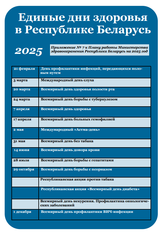 ЕДИНЫЕ ДНИ ЗДОРОВЬЯ В РЕСПУБЛИКЕ БЕЛАРУСЬ